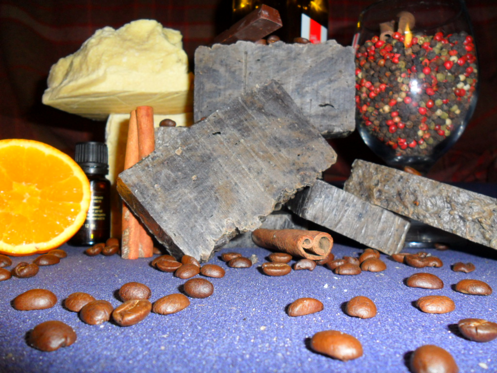 Обогащающие добавки: крепкий отвар свежемолотого кофе( арабика), специи( черный, белый, красный перец, корица), какао масло и какао тертое, нерафинорованное масло жожоба, эфирные масла чайного дерева, розмарина, лаванды, можжевельника, апельсина), любовь.